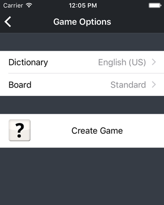 Once you're happy with your choice of dictionary and board type, tap the "Create Game" button.