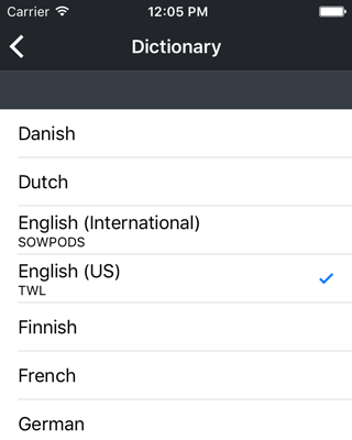 In the following screen, choose the dictionary you would like to use. Tap the back button once you've made your choice.