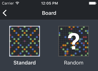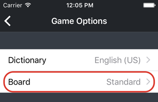 To choose between the normal or a randomized board layout, tap the "Board" button.